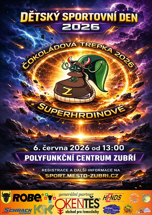 Už jen týden, přesně do čtvrtka 7. května, máte možnost přihlásit své dítě do Čokoládové trepky a zajistit mu tak účastnické tričko! Poté zadáváme trička do výroby a registrace už bude možná jen bez trička. Dětský den se uskuteční v sobotu 6. června 2026 a jaké bude téma? Superhrdinové! Těšit se tak můžete na Spidermana, Hulka, Aquamana, Thora či Wonder Woman. A z Vašich dětí se samozřejmě aspoň na chvíli stanou Superhrdinové taky. Nejen v rámci Superhrátek, ale taky v tradičních disciplínách Čokoládové trepky: běh, skok a hod zuberskou metlou.